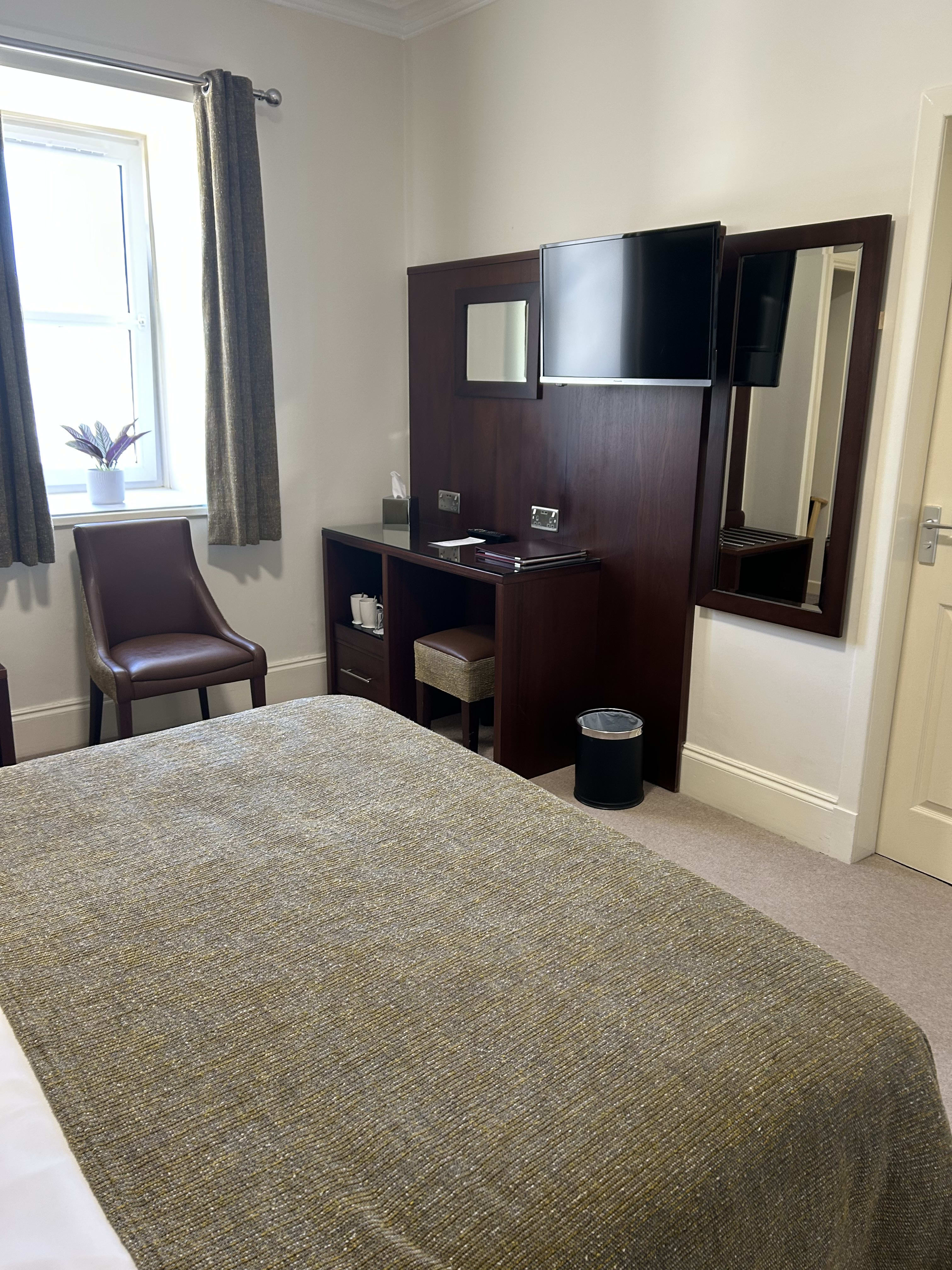 Our spacious King Size bedrooms offer superb comfort and modern furnishings. They have superb powerfull showers and enjoy either a view over the front garden or a side view. They are each equipped with 1 UK Kingsize bed (5ft wide).