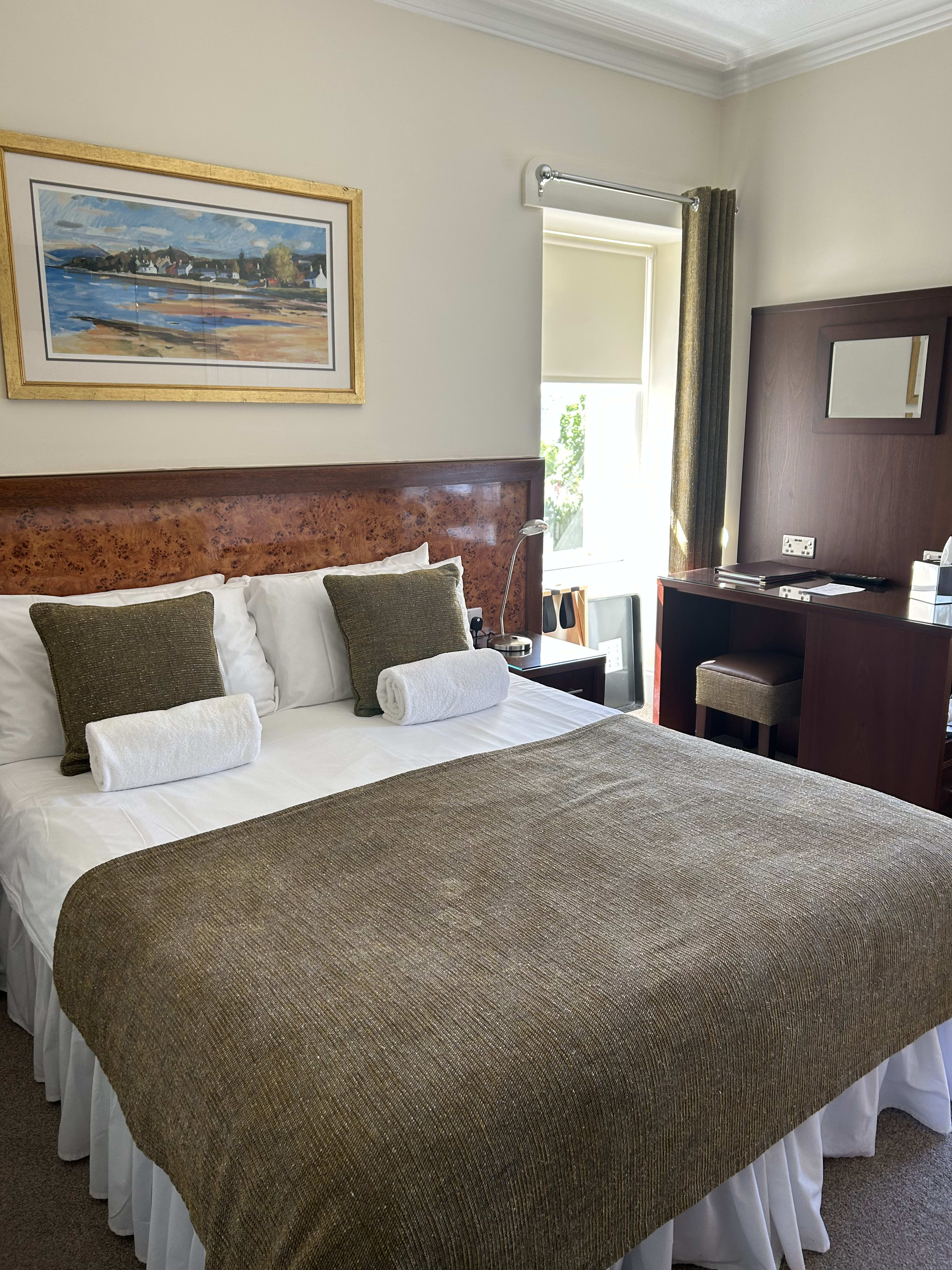 Inverglen is a beautiful stone guest house in a residential neighborhood, but just 10 minutes from the town center and train station. We stayed there for 2 nights, then took a Rabbies van trip to Stornoway for 3 days, and returned here for 2 nights. I loved staying in gorgeous old home instead of a hotel. The breakfasts are very good too, served in a lovely dining room.